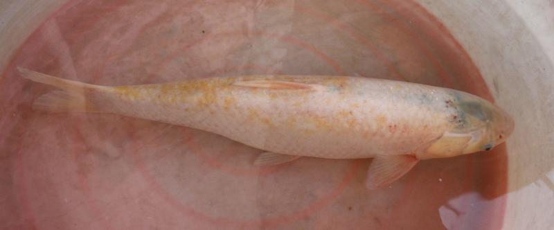 由于俄罗斯金草鱼原种亲鱼十分短缺,所以第三代以后的为全近亲繁殖的后一代,表现为:部分呈现头部有黑灰色或者绿灰色由背部向背鳍延伸,出现畸形,病害发生率高,多表现为猎食迟缓,生长比较缓慢。
