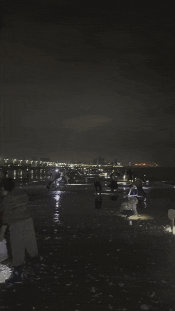 上千人戴着头灯赶海